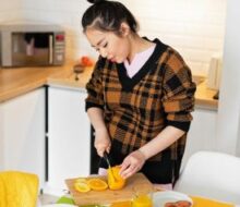 Suchymi owocami nasiąkającymi wrzątkiem w herbacie.