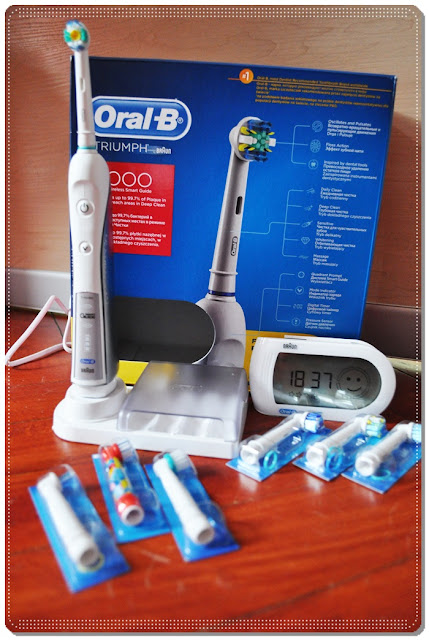 Dzisiaj przygotowałam dla Was dwa testy :) Jakiś czas temu wygrałam zestaw firmy OralB, który prezentował się jak na zdjęciu poniżej. W skład jego wchodziła szczoteczka elektryczna, Smart Guide oraz 8 końcówek do szczoteczki i oczywiście ładowarka i podstawek z miejscem na główki : )
