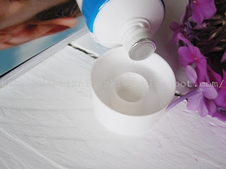 Kosmetyk zapakowany jest w kartoniku na którym znajdują się wszystkie ważne informacje. Sam produkt znajduje się w miękko biało niebieskiej tubie. Dozownik jest zabezpieczony sreberkiem. Zakręcony białym korkiem.