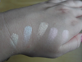 .Na dłoni nie mam bazy, więc jak widać pigmentacji nie można nic zarzucić. Samym jednak tym zestawem możemy zmalować jednak tylko makijaż dość subtelny (drugi z dwóch zestawów tych cieni myślę, że dałby większe pole manewru), jednak użyte do rozświetlenia oka (mają perłowe wykończenie) sprawdzają się znakomicie.