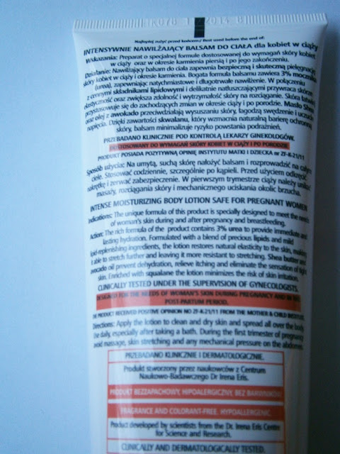 Zdziwiłam się gdy pani Małgorzata z portalu uroda i zdrowie zaproponowała mi do przetestowania balsam polecany dla kobiet w ciąży (nie nie jestem! :D ) Jednakże mi zależało na solidnym nawilżeniu, a poniższy kosmetyk jest właśnie intensywnie nawilżający.