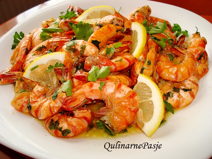Rozcinamy torebkę, a z niej uwalnia się wspaniały aromat krewetek, pietruszki i wina, w trakcie pieczenia powstał smakowity sos, doprawiony pikantnym imbirem – tylko jeszcze kilka plasterków cytryny, świeża natka pietruszki i można podawać.