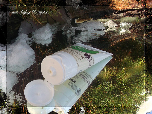 Kosmetyk ma kolor mleczno-biały i bardzo delikatną konsystencję, odrobinkę przypominającą mleczko. Dla mnie – ideał. Uwielbiam właśnie tego typu balsamy do ciała, które są lekkie jak mgiełka, a jednocześnie przyjemnie nawilżające. Zapach balsamu to mieszanka słodkiego i ziołowego aromatu, bardzo przyjemnego i delikatnego. Na skórze zamienia się w uroczo delikatny zapach owoców i mchu, złamany delikatną nutą słodyczy (tak przynajmniej go odbieram). Jest czysty i świeży, pobudzający, a jednocześnie przyjemnie relaksujący.