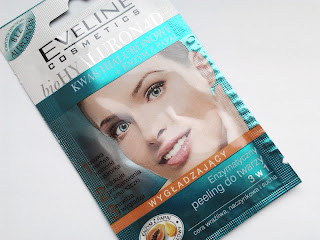 Peeling znajduje się w 7-mililitrowej saszetce. Takie opakowanie jest dobrym sposobem na zapoznanie się z kosmetykiem, jednak moim zdaniem można zbankrutować kupując non stop maseczki czy peelingi w tego typu pudełkach. Zapach znowu na plus: delikatny z nutką owocową, niedrażniący. Konsystencja jest typowo kremowa i śnieżnobiała. Nakłada się go przyjemnie na twarz.