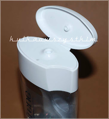 Efekt: płyn dobrze zmywa makijaż z twarzy, po dwóch wacikach twarz jest oczyszczona z podkładu. Jeśli chodzi o demakijaż oczu, to płyn radzi sobie średnio. Dobrze zmywa lekkie makijaże oczu (jasne cienie+mascara), jednak z eyelinerem i ciemniejszymi cieniami radzi sobie średnio… Niby rzęsy są już czyste, gdy na dolnej powiece robią się mazy z mascary, których nie da się zmyć :( Biorę więc kolejny wacik, pocieram, pocieram i nie schodzi! A w efekcie mam pandę pod okiem i piecze mnie skóra pod oczami (nie oczy), chociaż nie pocierałam jej mocno :(