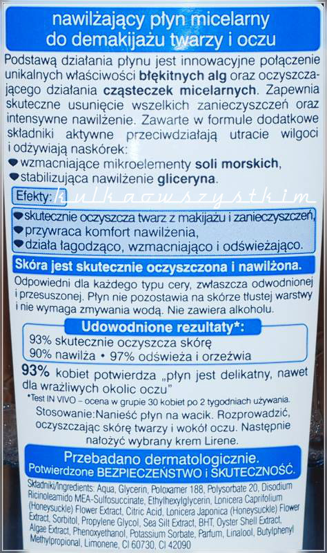 Dziś o nawilżającym płynie micelarnym do demakijażu twarzy i oczu Aqua Cristal od Lirene.