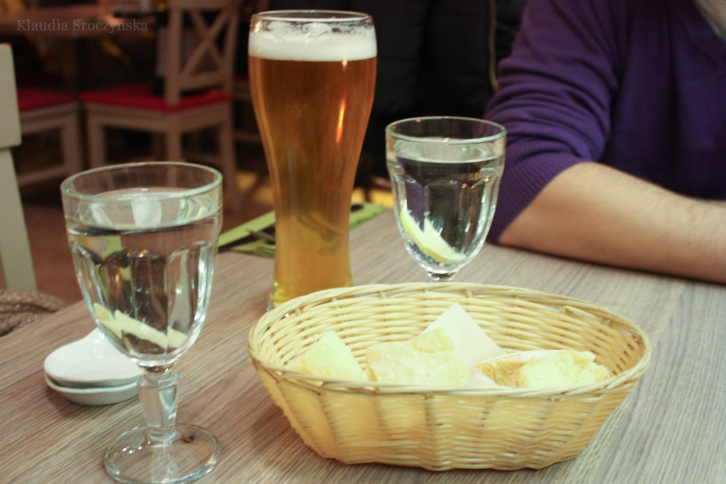 Po chwili od złożenia zamówienia na stół podano nam starter, czyli foccacię – idealnie smakowała polana oliwą i pozwala na chwilowe zaspokojenie głodu.