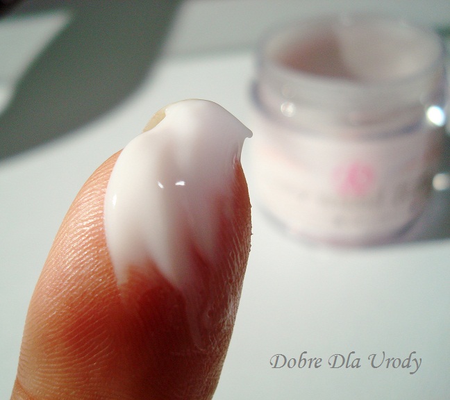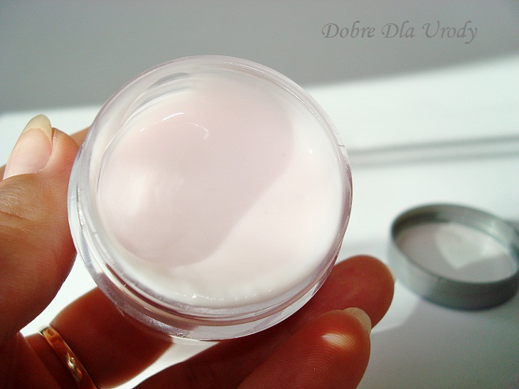Aplikacja nie zbyt wygodna, ciężko wydostawać tak delikatny kosmetyk palcami ze słoiczka, jest niczym rzadki jogurt, pompka to zdecydowanie ułatwia, ale na skórze rozprowadza się idealnie, błyskawicznie wnika w nią.