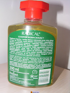 Nie mam mu nic do zarzucenia. Bardzo ładnie pachnie skrzypem ,zapach kojarzy mi się z letnią łąką. Podczas mycia bardzo dobrze się pieni , dobrze myje wszystkie zanieczyszczenia chociaż muszę przyznać, że po olej-owaniu włosów konieczne jest dwukrotne mycie. Po umyciu włosy są miłe w dotyku. Szampon nie jest testowany na zwierzętach i ciszy mnie to,że żadne zwierzątko nie ucierpiało na produkcji tego szamponu. Jednak muszę stwierdzić, że szampon o wiele lepiej spisuje się w parze z odżywką lub maską tej serii.Widoczną poprawę moich włosów zauważyłam po 3 miesiącach użytkowania.