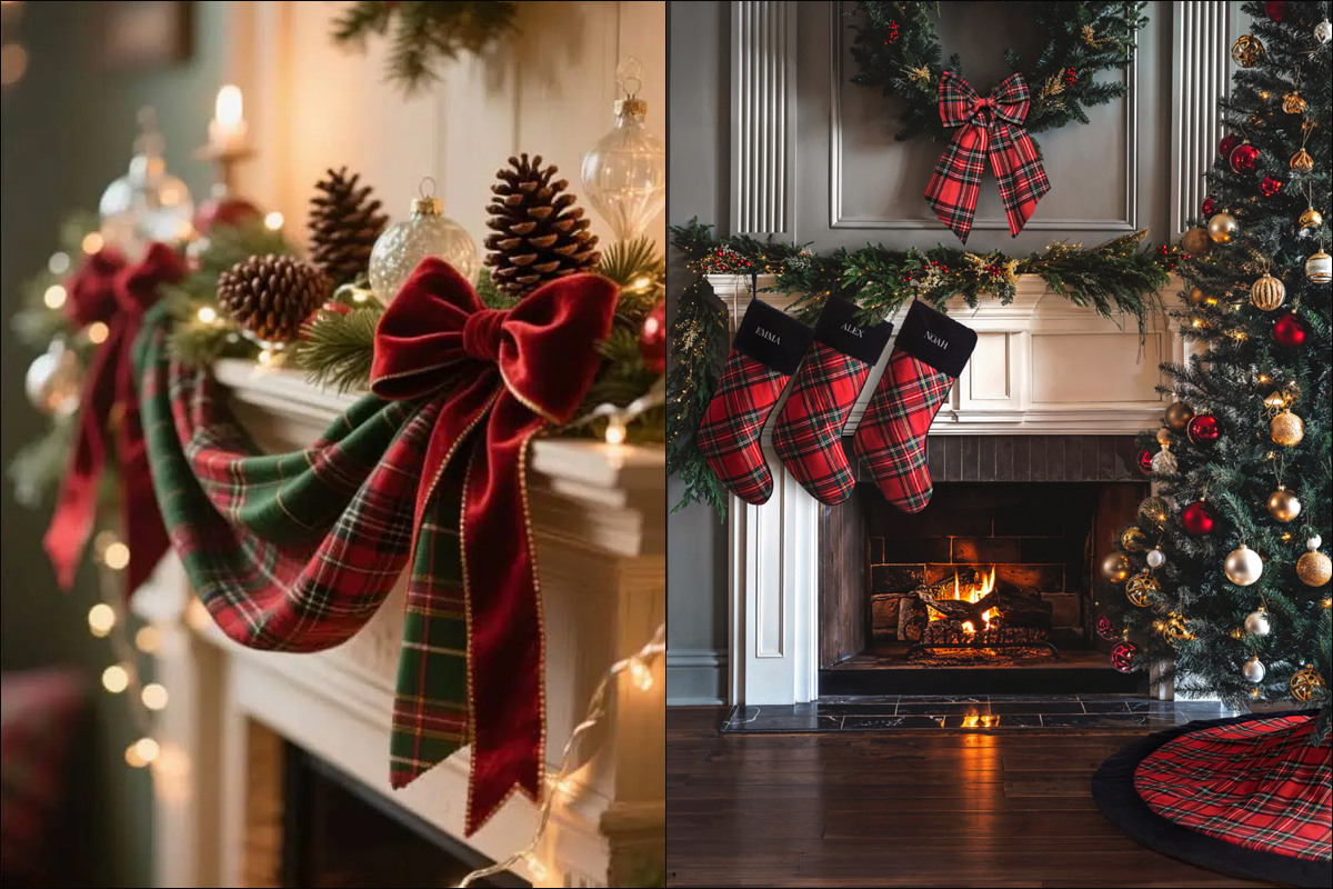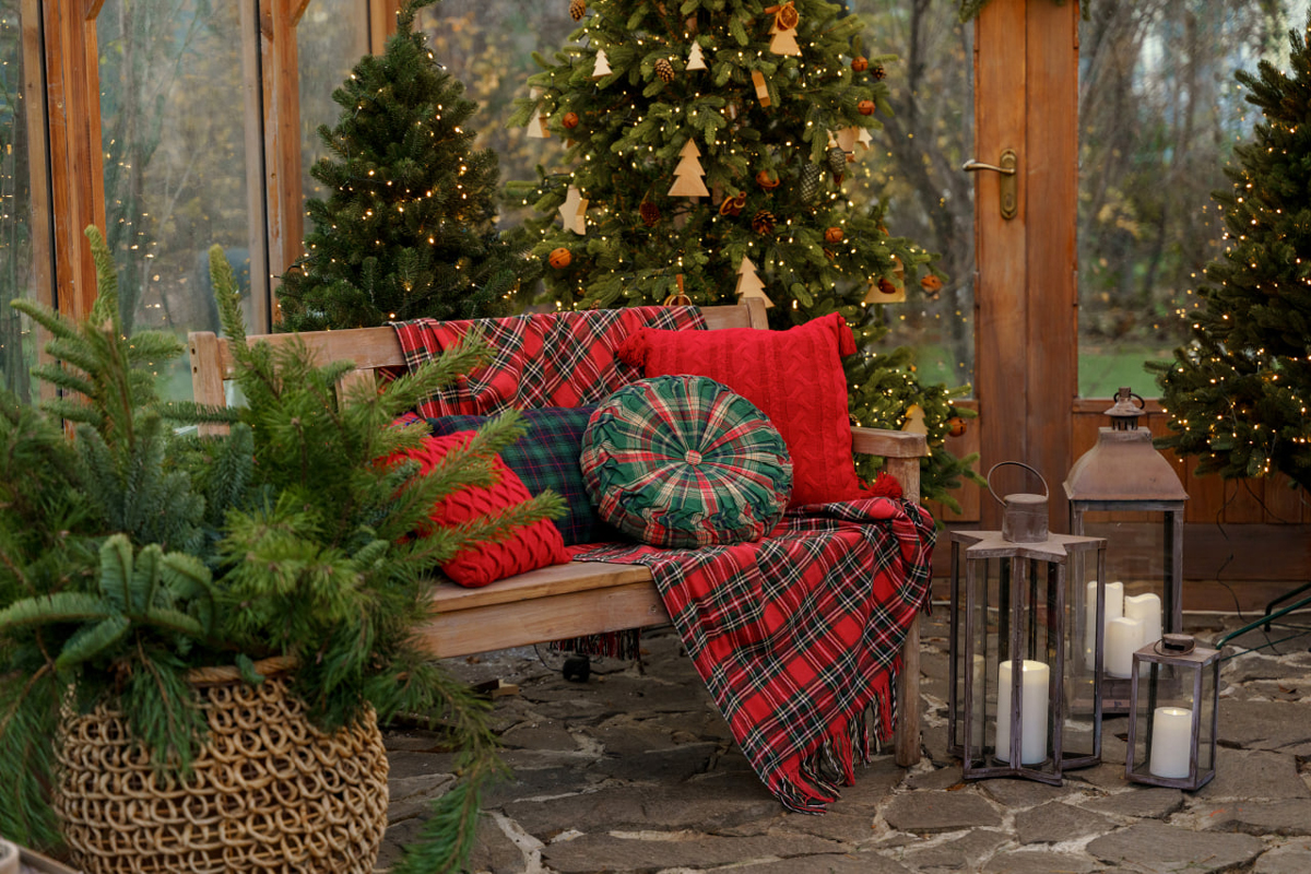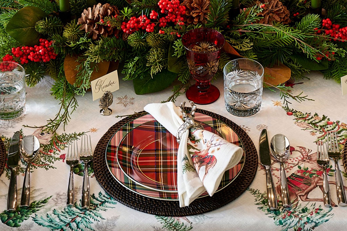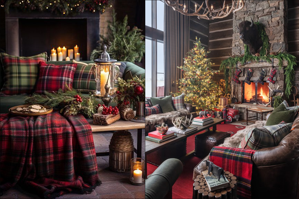 Styl Ralph Lauren Christmas opiera się na charakterystycznej palecie, w której królują głębokie czerwienie, zielenie, granat oraz szkocka krata w klasycznych odcieniach. Tartan nie jest tu jedynie ozdobą, ale symbolem rodzinnej tradycji — kojarzy się z eleganckimi wnętrzami i domem pełnym świątecznej magii. W tym trendzie zauważamy szczególną dbałość o faktury: wełnę, flanelę, aksamit i szlachetny tweed. W dekoracjach dominują miękkie poduszki, pledy, zasłony oraz obrusy, które otulają wnętrze wizualnym ciepłem. Nastrój tworzą również klasyczne świąteczne wzory: jelenie, gwiazdy czy stylizowane monogramy. To estetyka, która łączy amerykański luksus z europejskim dziedzictwem, dzięki czemu wydaje się ponadczasowa.