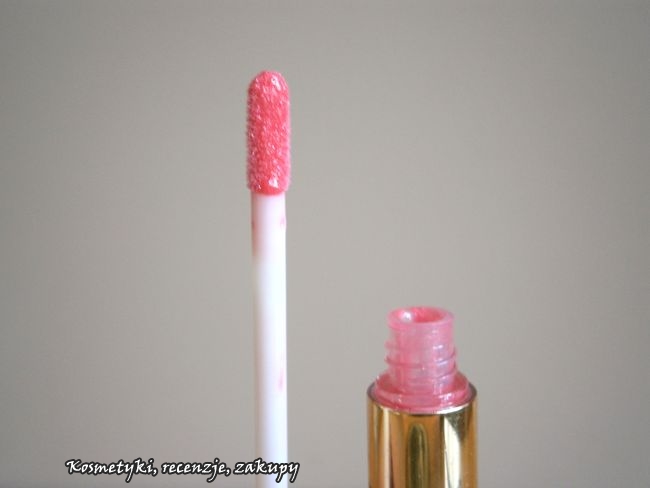 Konsystencja jest bardzo gęsta, ciągnąca się i klejąca. Produkt jest bardzo perłowy, co troszkę mi przeszkadza (chyba za bardzo przyzwyczaiłam się do kremowych błyszczyków essence).