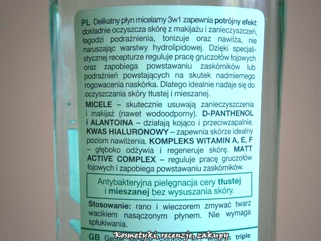 Już Wam kiedyś wspominałam, że płynów micelarnych używam jedynie do demakijażu oczu, a nie do całej twarzy, dlatego oceniam go tylko pod tym względem. Zgadzam się z tym, że produkt dobrze usuwa makijaż. Jestem nim naprawdę pozytywnie zaskoczona. Co do nawilżenia to nie jestem w stanie tego określić, ale na pewno nie wysusza mi powiek i okolic wokół oczu (co zdarzalo mi się przy innych płynach czy kremach pod oczy). Nie pozstawia tłustego filmu – z tą kwestią także się zgodzę. Ponadto nie robi „efektu pandy”, efektu widzenia za mgłą i nie podrażnia moich oczu.