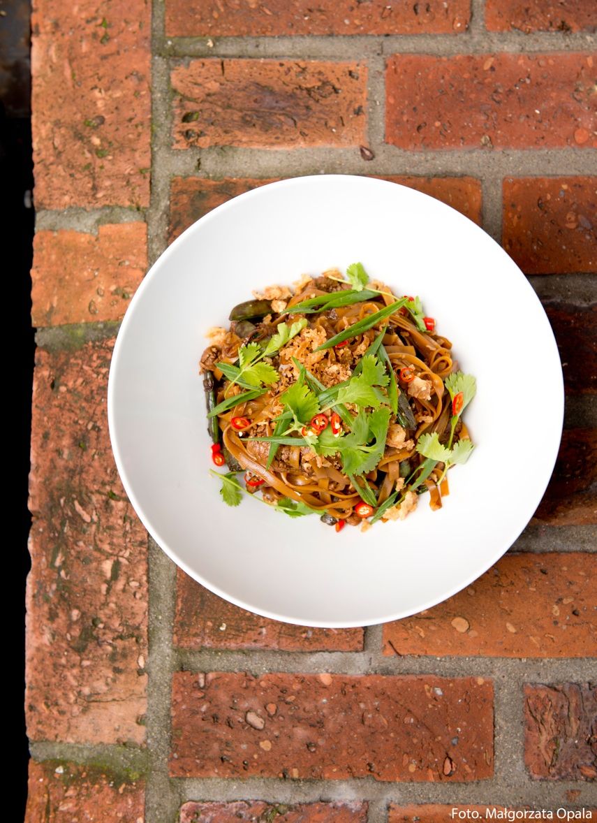 Na drugie danie miałam makaron ryżowy po azjatycku z polędwicą wołową. Jak dla mnie zbyt mocno dominował smak sosu sojowego ale to za pewne kwestia gustu. Podobało mi się wykorzystanie w daniu zielonego groszku cukrowego, bo sezon właśnie się zaczął.
