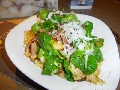 Kremowe risotto z kurczakiem, włoską dojrzewającą szynką, suszonymi pomidorami, cukinią, syropem klonowym. Z dodatkiem wina Marsala, bulionu, masła, szałwii i roszponki, ze świeżo startym Grana Padano.To danie od razu nas zachwyciło i przypadło do gustu bardziej niż tagliatelle, ponieważ jest bardziej wyraziste w smaku, świetnie doprawione, po prostu takie jak lubię z ogromną ilością świeżych ziół, kremowe, ale nie rozgotowane, ryż jest al dente, przyjemnie się go je. Cena 34,90 zł