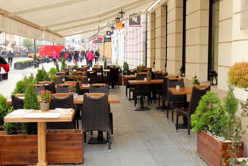 | Ogródek restauracji Dawne Smaki od strony ul. Nowy Świat – przy okazji posiłku można pogapić się na przechodniów |
