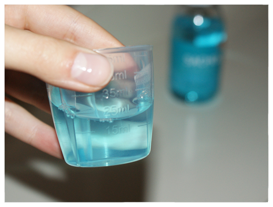 Produkt otrzymujemy w plastikowej buteleczce, która jest niezwykle poręczna! Aż prosi się, aby zabierać go w torebce zawsze ze sobą. Zakrętka powiedziałabym, że jest taka „syropkowa” – można jej zaufać. Super, że dostajemy razem z produktem miarkę.