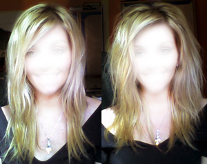 Działanie: puder idealnie unosi włosy u nasady. Minusem może być to, ze w dotyku są później takie szorstkie, jakby poklejone. I czasem robią się też matowe. Puder wcale nie utrzymuje włosów w tej pozycji dlugo, ponieważ po godzinie włosy zaczynają oklapywać. Jednak po ponownym przetarciu dłonią po skórze głowy, włosy znów na jakiś czas odbijają się od nasady (jednak radzę poprawki robić przy lustrze, bo mimo iż lubię nieład na głowie jakby po wyjściu z łóżka, to jednak w tym przypadku można z tym nieładem przesadzić :D). Nie zauważyłam, aby przyspieszał przetłuszczanie włosów, ponieważ myję je codziennie, więc nic złego w ciągu jednego dnia się z nimi nie dzieje. Na zdjęciu efekt przed i po.