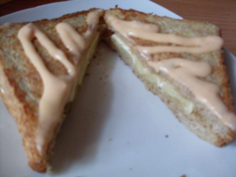 Kromkę tostowego chleba smarujemy masłem, nakładamy na to ser camembert lub szynkę szwarcwaldzką oraz oliwki, a następnie wszystko przykrywamy drugą kromką chleba. Tak przygotowaną kanapkę obtaczamy w roztrzepanym jajku i smażymy na złoto. Tosty podajemy z sosem kanapkowym lub sosem czosnkowym. Sosy dodatkowo wzbogacą kanapkę o nowe smaki oraz sprawią, że nie będzie sucha.