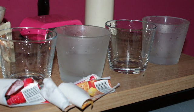 Pokażę Wam mój sposób na świeczniki które wykorzystałam po świeczkach z biedronki zostały mi szklane opakowania które przez dłuższy czas stały bezczynnie az znalazłam dla nich zastosowanie