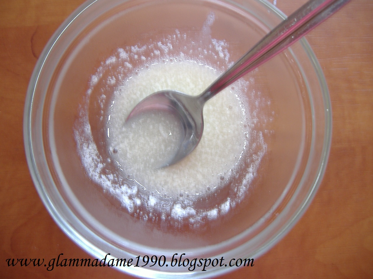 Do miseczki wsypujemy łyżeczkę żelatyny i 3 łyżeczki mleka. Całość mieszamy do uzyskania papki jak na zdjęciu obok ;) Następnie zostaje tylko podgrzać swoją miksturę w tym celu użyjemy mikrofalówki zatem wystarczy włożyć ją na około 10 sekund.