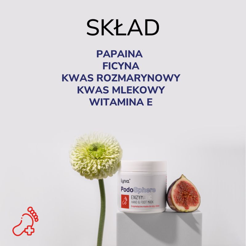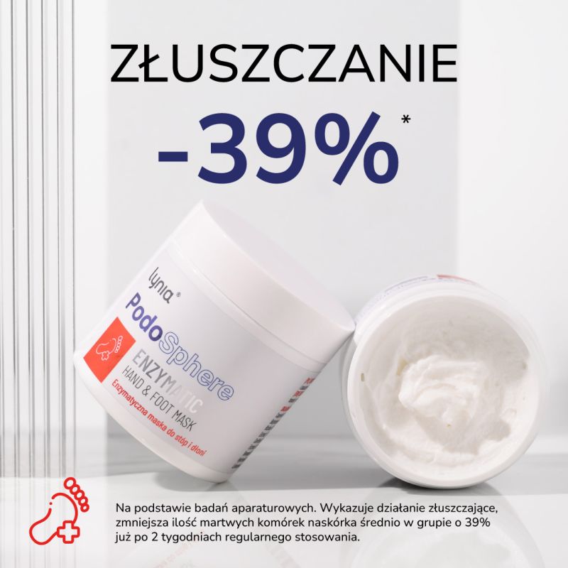 W serii Lynia PodoSphere rolę tego etapu pełni enzymatyczna maska do stóp i dłoni, która według informacji producenta wspiera proces odnowy skóry. Marka wskazuje, że przy regularnym stosowaniu może dochodzić do zauważalnej redukcji martwych komórek naskórka, co wpisuje się w podejście oparte na systematycznej, a nie jednorazowej pielęgnacji.