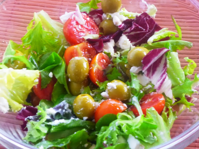 Drugą potrawą jest sałatka z dodatkiem dodatkiem oliwek zielonych anchois.