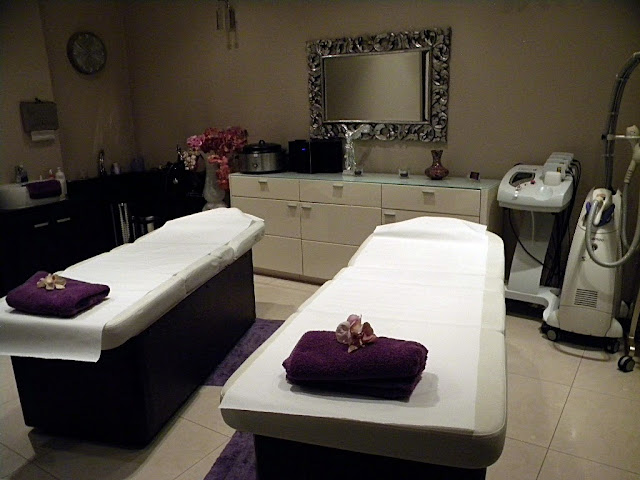 Od razu urzekło mnie bardzo gustownie urządzone wnętrze – znajdziemy tam mnóstwo ciepłego fioletu, spokojne i lekko przygaszone światło, śliczne kryształowe żyrandole. Dodatkowo ogromnym atutem jest przemiła obsługa. Już na początku zostałam poczęstowana pyszną kawą i zaprowadzono mnie do przebieralni – tam zostawiłam swoje rzeczy w zamykanej na kluczyk szafeczce, wdziałam na siebie pareo i jednorazowe kapcie. Byłam gotowa do zabiegu.
