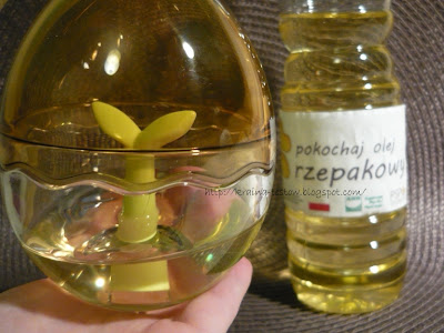 Jakiś czas temu otrzymałam za pośrednictwem portalu uroda i zdrowie właśnie olej rzepakowy, fikuśny shaker w kształcie jajka ;) oraz ciekawy poradnik. I właśnie w tym miejscu chcę się z Wami podzielić kilkoma informacjami na temat oleju rzepakowego :)