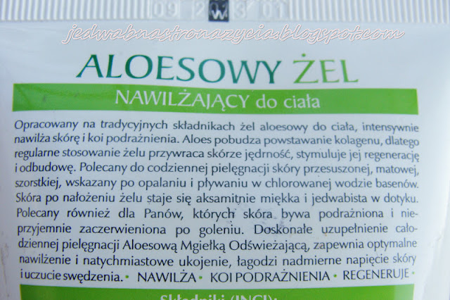 Opracowany na tradycyjnych składnikach żel aloesowy do ciała, intensywnie nawilża skórę i koi podrażnienia. Aloes pobudza powstawanie kolagenu, dlatego regularne stosowanie żelu przywraca skórze jędrność. Polecany do codziennej pielęgnacji skóry przesuszonej, matowej, szorstkiej, wskazany po opalaniu i pływaniu w chlorowanej wodzie basenów. Skóra po nałożeniu żelu staje się aksamitnie miękka i jedwabista w dotyku. Polecany również dla Panów, których skóra bywa podrażniona i nieprzyjemnie zaczerwieniona po goleniu. Doskonałe uzupełnienie całodziennej pielęgnacji Aloesową Mgiełką Odświeżającą, zapewnia optymalne nawilżenie i natychmiastowe ukojenie, łagodzi nadmierne napięcie skóry i uczucie swędzenia.