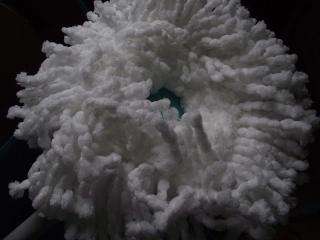 Muszę wspomnieć o tym, że bardzo podoba mi się możliwość odwirowania wody za pomocą specjalnego mechanizmu wirującego. Nie musimy naciskać nogą na pedał, by odwirować wodę. Wystarczy zwolnić blokadę (jak na zdjęciu poniżej) i wykonując delikatne ruchy dociskające, głowica mopa będzie obracała się, a tym samym pozbywała nadmiaru wody. Jak dla mnie ten patent, to rewelacja!