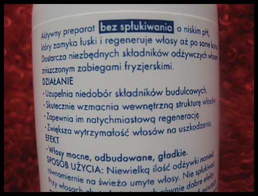 Odżywkę spłukiwałam, moje włosy nie przepadają za odżywkami bez spłukiwania, są wtedy mocno obciążone:(