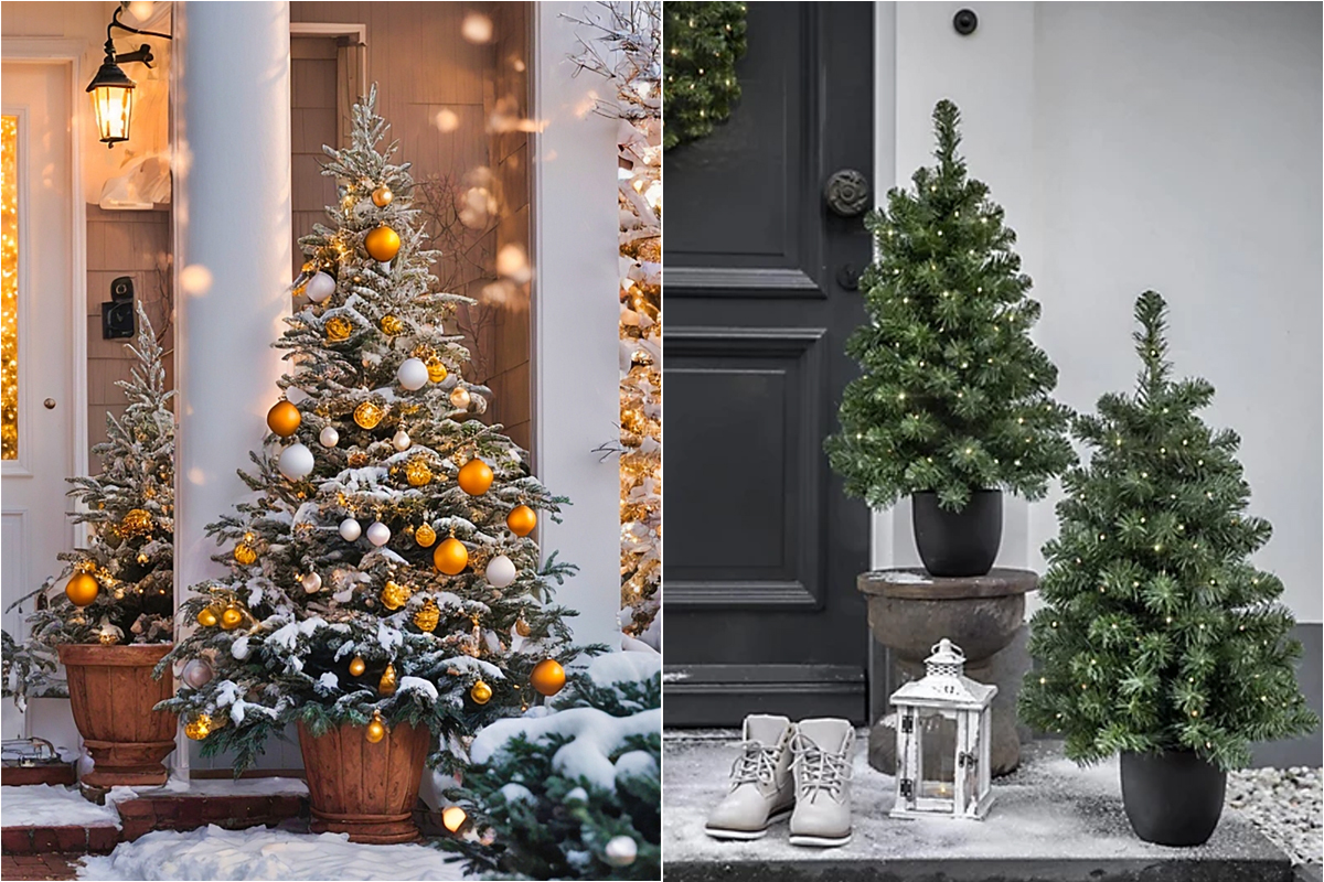 Choinka ustawiona na balkonie, tarasie lub przy schodach domu staje się jednym z najmodniejszych sposobów na stworzenie świątecznej atmosfery bez nadmiernej konsumpcji.