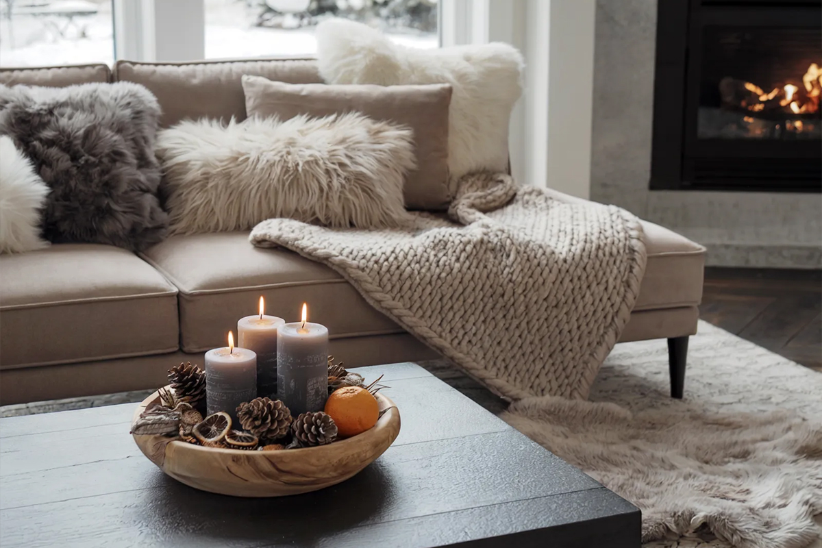 Zauważamy, że najprostszym sposobem na zimową metamorfozę wnętrza są tekstylia. Pledy, poduszki i narzuty natychmiast ocieplają przestrzeń. Chcemy wybierać tkaniny miękkie, przyjemne w dotyku i wizualnie „ciepłe”. Zimą świetnie sprawdzają się dzianiny, welur oraz sztuczne futerka. To dodatki, które nie wymagają dużego budżetu. Wystarczy jeden nowy pled, aby sofa zyskała zupełnie inny charakter. Tekstylia są też łatwe do przechowywania i wymiany. Dzięki temu możemy zmieniać aranżację sezonowo.